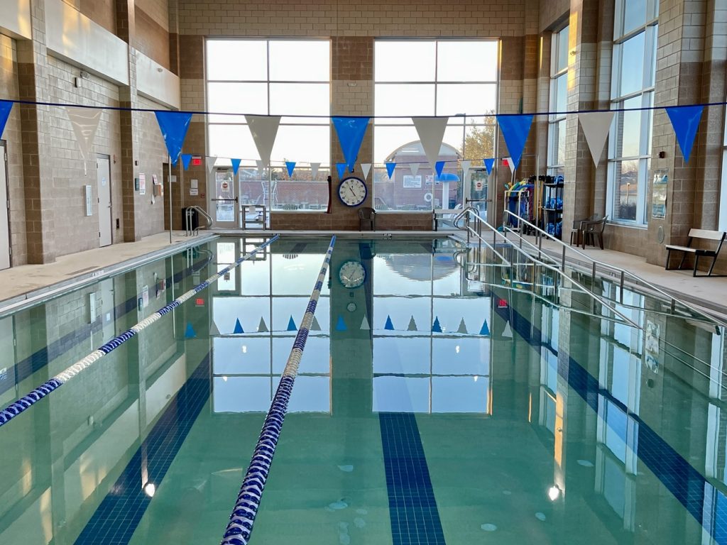 - Three aquatic fitness spaces, including indoor and outdoor lap pools and a warm-water aqua track with a current that can be turned on and off to increase or decrease resistance.